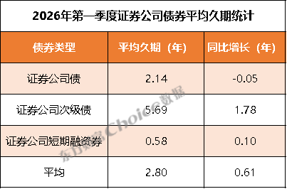 注:2026年1月1日-3月31日统计证券公司债券平均久期,以年为单位。