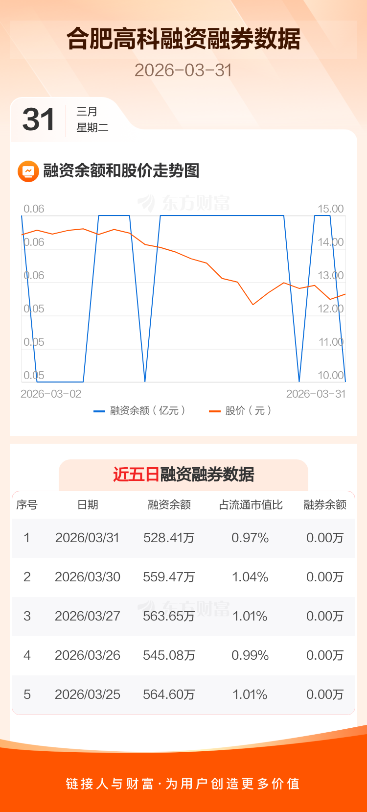 交易所最新数据显示,合肥高科于2026年3月31日获融资买入29.76万元,融资偿还60.82万元,当日融资净偿还31.06万元。目前,该股融资余额528.41万,占流通市值比例为0.97%。