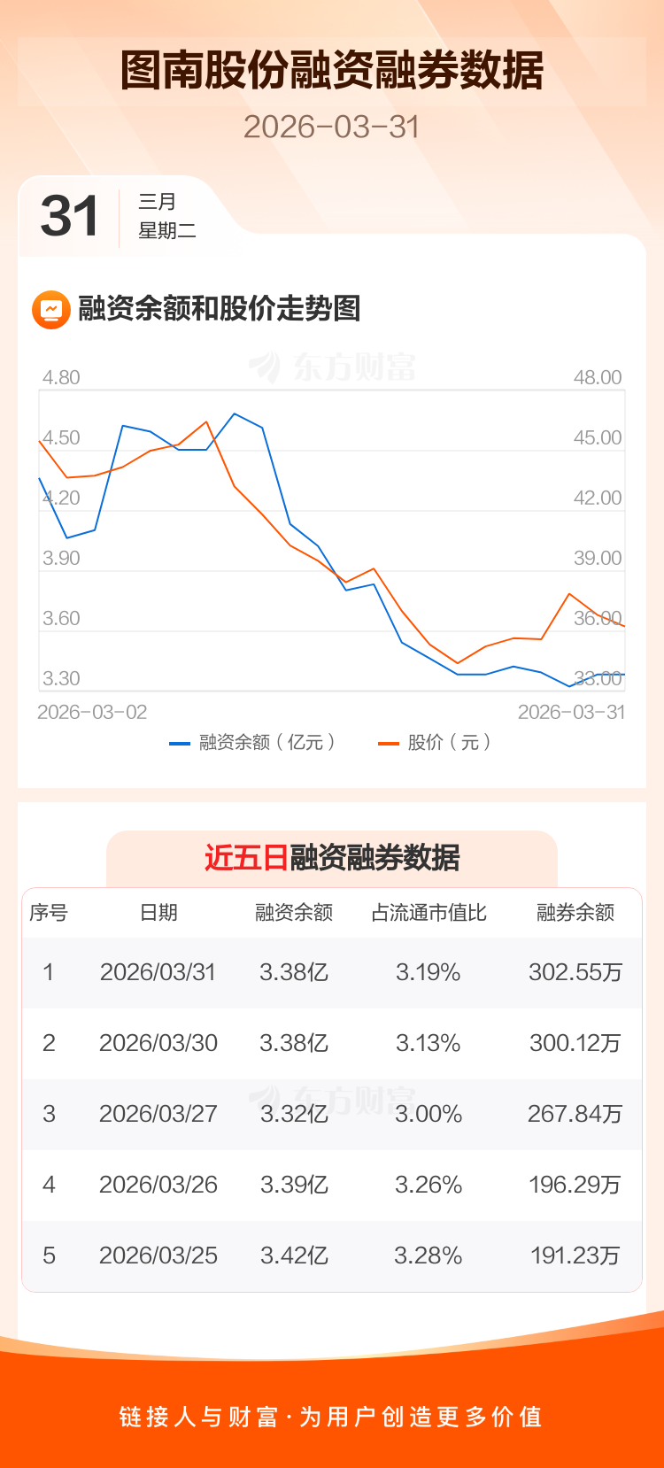 交易所最新数据显示,图南股份于2026年3月31日获融资买入803.98万元,融资偿还789.37万元,当日融资净买入14.61万元。目前,该股融资余额3.38亿,占流通市值比例为3.19%。