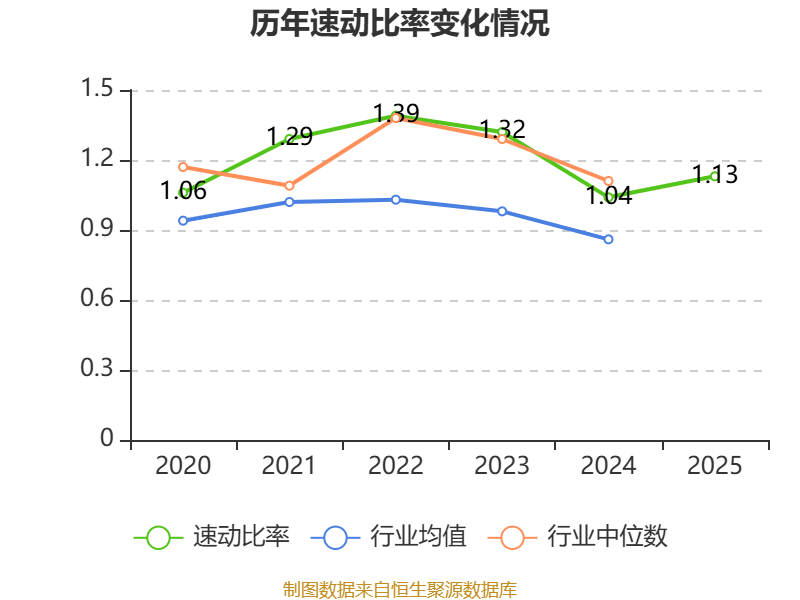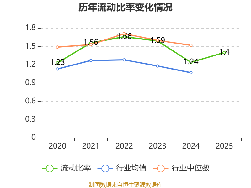 2025年,公司流动比率为1.4,速动比率为1.13。