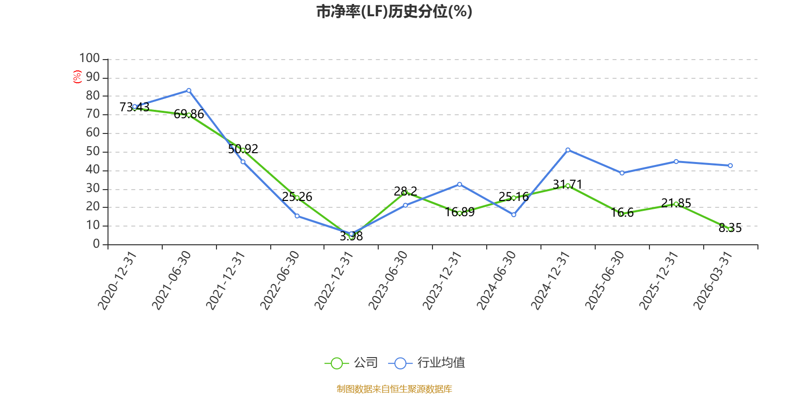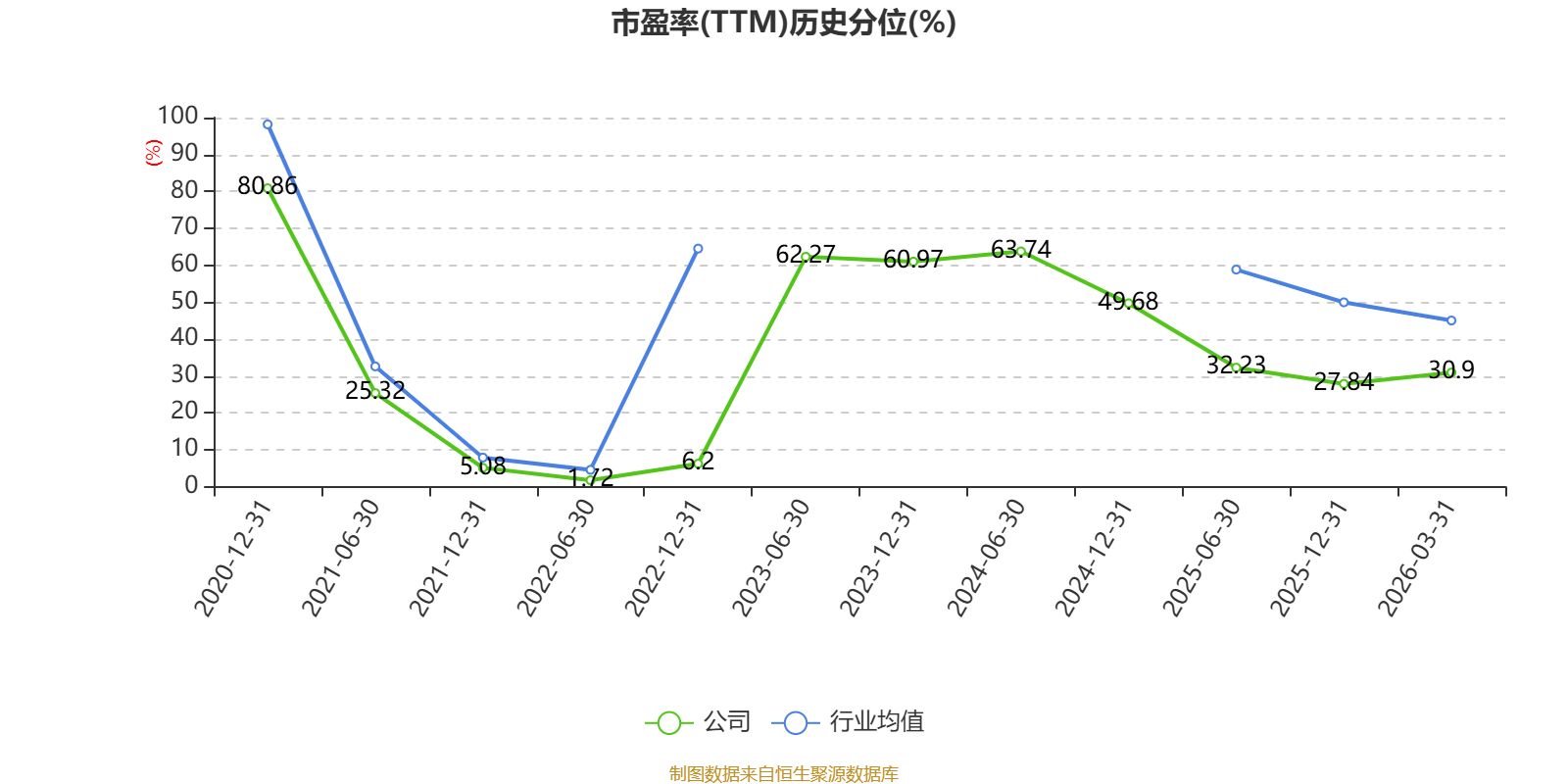 市盈率、市净率为负时,不显示当期分位数,会导致折线图中断。