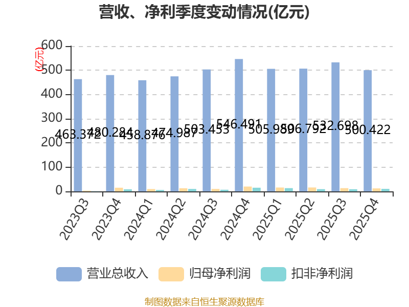 年报显示,2025年末的公司十大流通股东中,新进股东为高毅晓峰鸿远集合资金信托计划,取代了三季度末的合肥建翔投资有限公司。在具体持股比例上,香港中央结算有限公司持股有所上升,华泰柏瑞沪深300交易型开放式指数证券投资基金、易方达沪深300交易型开放式指数发起式证券投资基金、华夏沪深300交易型开放式指数证券投资基金持股有所下降。