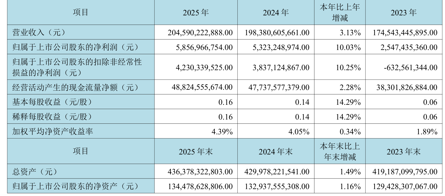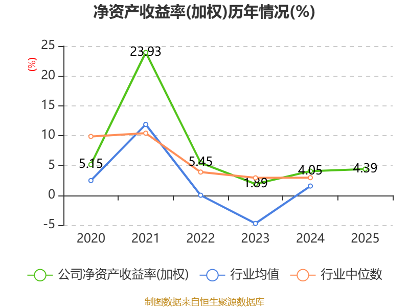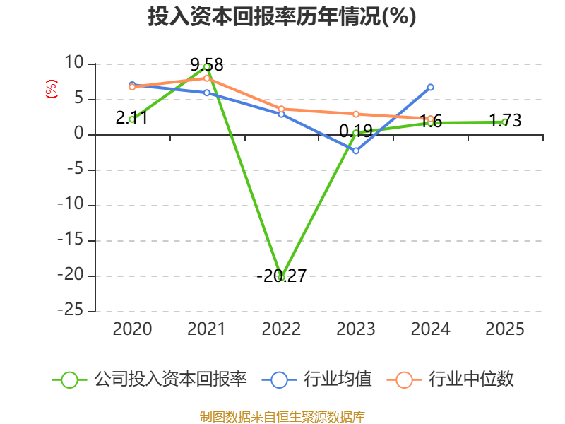 数据显示,2025年公司加权平均净资产收益率为4.39%,较上年同期上升0.34个百分点。公司2025年投入资本回报率为1.73%,较上年同期上升0.13个百分点。