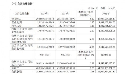 3月31日,深圳燃气(601139.SH)披露2025年年度报告。在能源市场波动及行业转型压力下,公司全年实现营业收入298.01亿元,同比增长5.12%;受部分业务阶段性调整影响,归母净利润14.08亿元,同比下降3.37%;扣非归母净利润14.44亿元,同比增长2.87%。