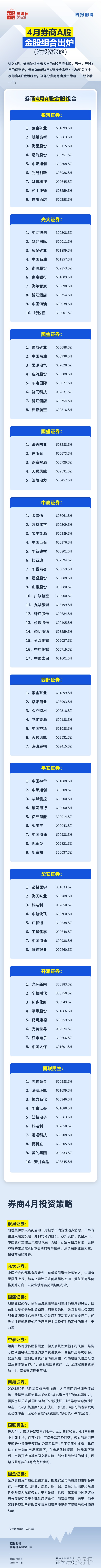 原标题:时报图说丨4月券商A股金股组合出炉 附投资策略