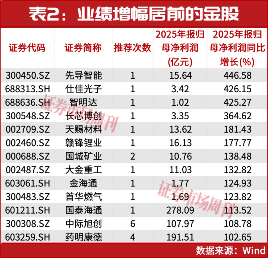 此外,业绩增幅居前的4月金股还有仕佳光子、智明达、长芯博创等,其中业绩增幅超过100%的共有13家(见表2)。