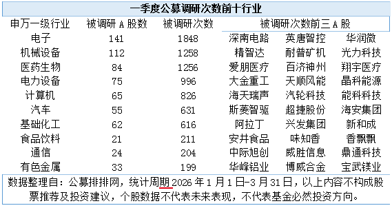 市场波动期,机构的调研足迹往往藏着最真实的布局信号。刚过去的2026年一季度,公募基金调研次数已经破万,头部机构积极出手,从电子到医药、从电力设备到汽车,锁定后市潜力方向。