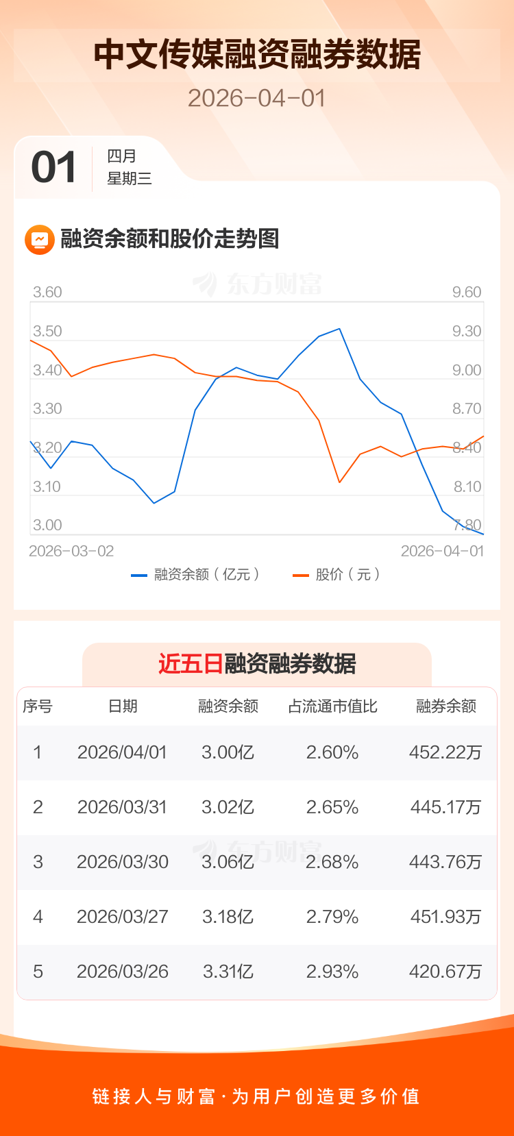 交易所最新数据显示,中文传媒于2026年4月1日获融资买入481.20万元,融资偿还680.00万元,当日融资净偿还198.79万元。目前,该股融资余额3.00亿,占流通市值比例为2.60%。