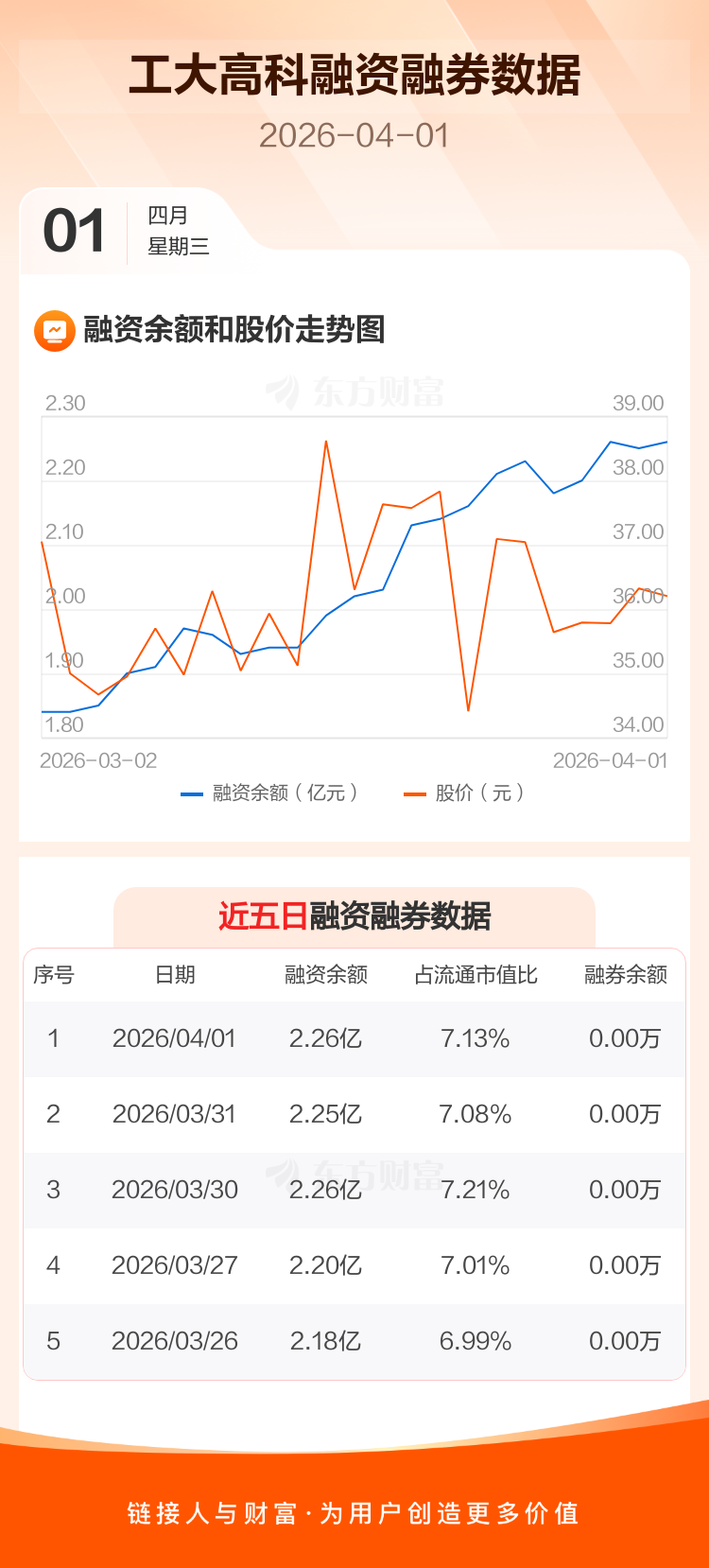 交易所最新数据显示,工大高科于2026年4月1日获融资买入698.24万元,融资偿还632.86万元,当日融资净买入65.39万元。目前,该股融资余额2.26亿,占流通市值比例为7.13%。