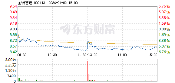 金洲管道4月2日盘中跌幅达5%