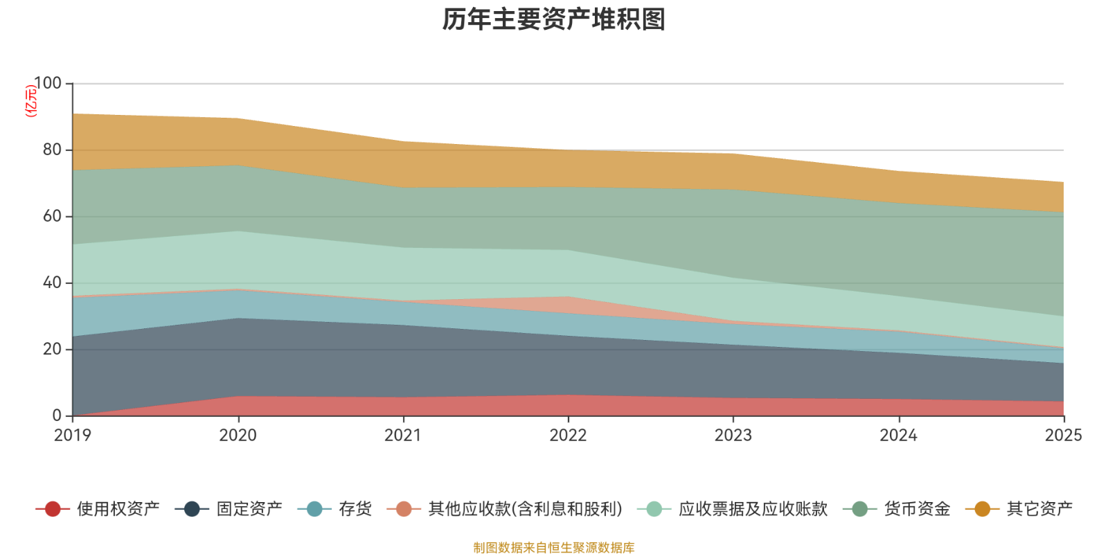 资产重大变化方面,截至2025年末,公司货币资金较上年末增加11.91%,占公司总资产比重上升6.53个百分点;固定资产较上年末减少17.18%,占公司总资产比重下降2.5个百分点;存货较上年末减少29.54%,占公司总资产比重下降2.28个百分点;应收票据及应收账款较上年末减少10.21%,占公司总资产比重下降0.84个百分点。