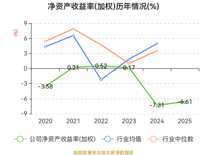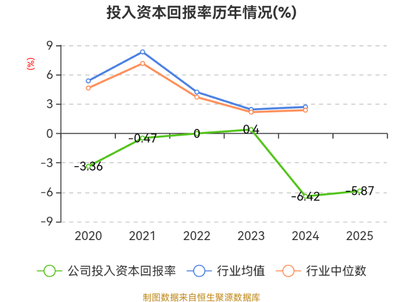 数据显示,2025年公司加权平均净资产收益率为-6.61%,较上年同期上升0.7个百分点。公司2025年投入资本回报率为-5.87%,较上年同期上升0.55个百分点。