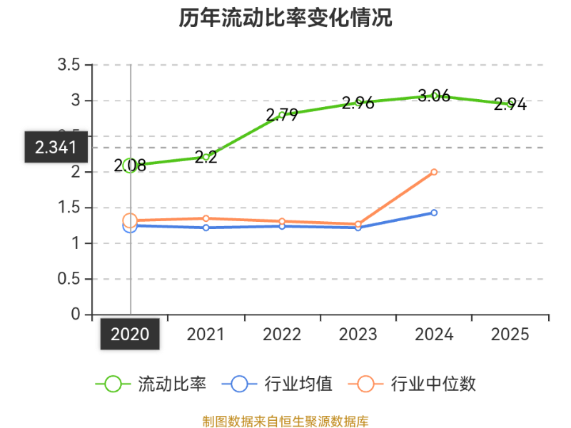 2025年,公司流动比率为2.94,速动比率为2.66。