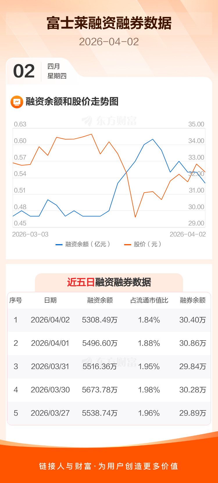 交易所最新数据显示,富士莱于2026年4月2日获融资买入158.86万元,融资偿还346.97万元,当日融资净偿还188.11万元。目前,该股融资余额5308.49万,占流通市值比例为1.84%。