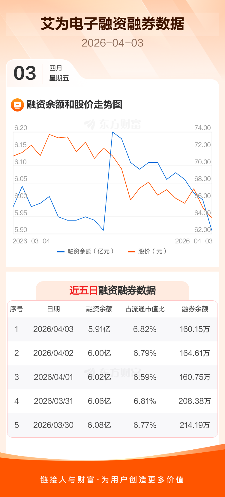 交易所最新数据显示,艾为电子于2026年4月3日获融资买入912.85万元,融资偿还1755.73万元,当日融资净偿还842.88万元。目前,该股融资余额5.91亿,占流通市值比例为6.82%。