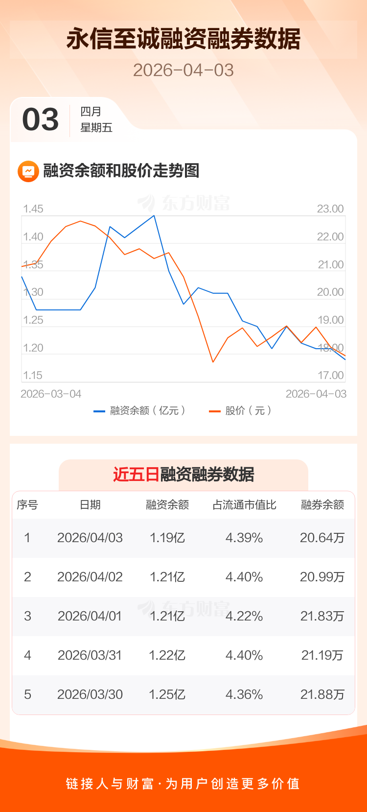 交易所最新数据显示,永信至诚于2026年4月3日获融资买入311.15万元,融资偿还548.82万元,当日融资净偿还237.67万元。目前,该股融资余额1.19亿,占流通市值比例为4.39%。
