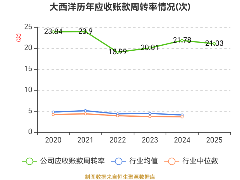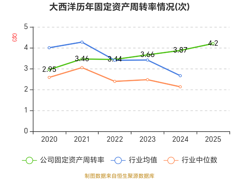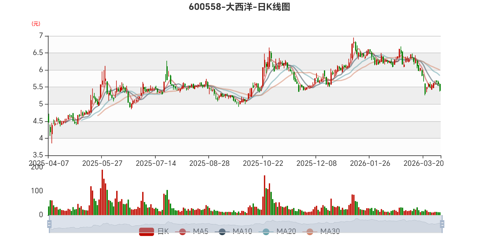 以4月3日收盘价计算,大西洋目前市盈率(TTM)约为26.6倍,市净率(LF)约2倍,市销率(TTM)约1.3倍。