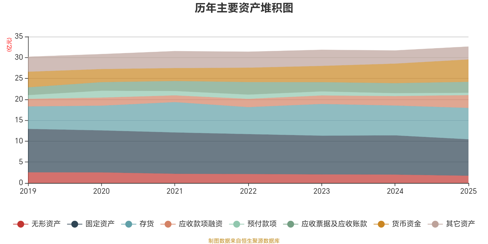 资产重大变化方面,截至2025年末,公司固定资产较上年末减少7.09%,占公司总资产比重下降2.88个百分点;应收款项融资较上年末增加35.57%,占公司总资产比重上升2.26个百分点;货币资金较上年末增加14.69%,占公司总资产比重上升1.68个百分点;无形资产较上年末减少13.17%,占公司总资产比重下降0.99个百分点。
