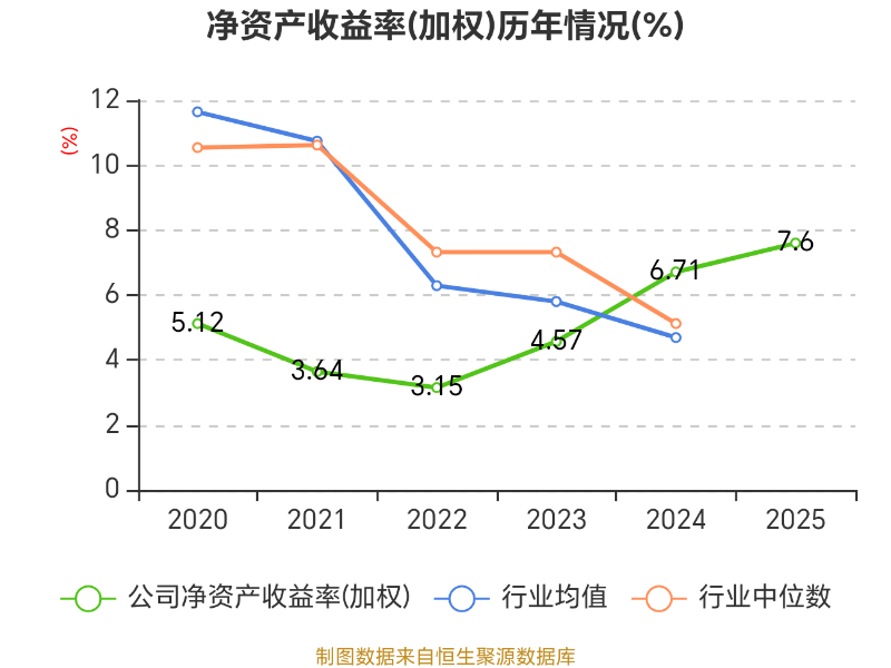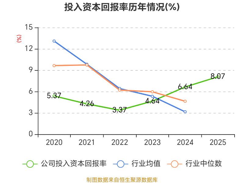 数据显示,2025年公司加权平均净资产收益率为7.6%,较上年同期上升0.89个百分点。公司2025年投入资本回报率为8.07%,较上年同期上升1.43个百分点。