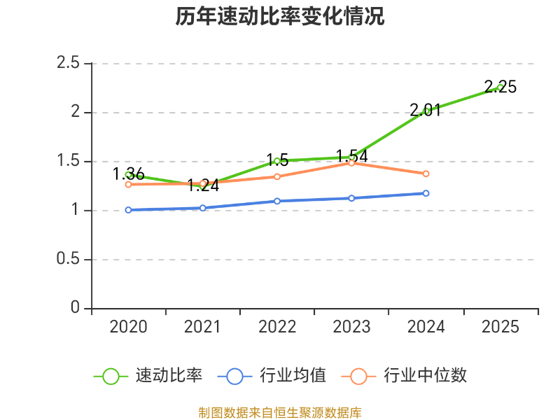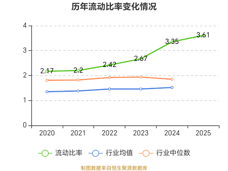 2025年,公司流动比率为3.61,速动比率为2.25。