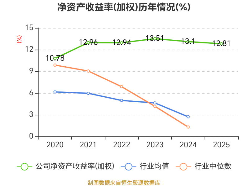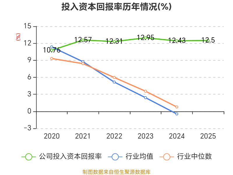 数据显示,2025年公司加权平均净资产收益率为12.81%,较上年同期下降0.29个百分点。公司2025年投入资本回报率为12.5%,较上年同期上升0.07个百分点。