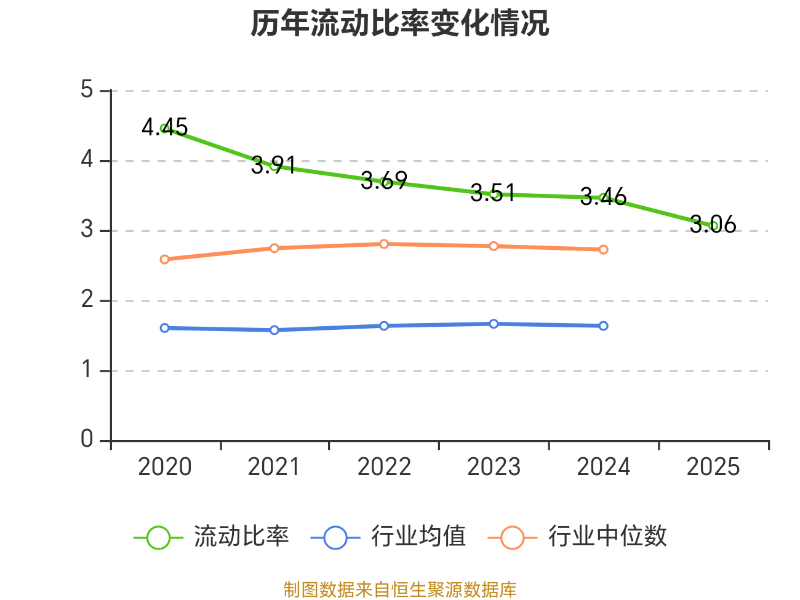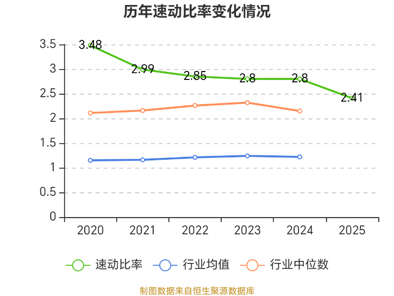 2025年,公司流动比率为3.06,速动比率为2.41。