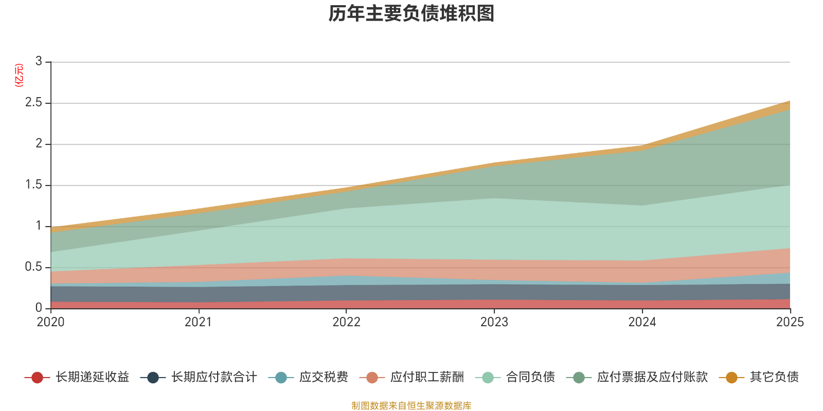 负债重大变化方面,截至2025年末,公司应付票据及应付账款较上年末增加37.66%,占公司总资产比重上升1.95个百分点;应交税费较上年末增加367.81%,占公司总资产比重上升1.12个百分点;预计负债占公司总资产的0.78%,上年末为0;合同负债较上年末增加14.72%,占公司总资产比重上升0.29个百分点。