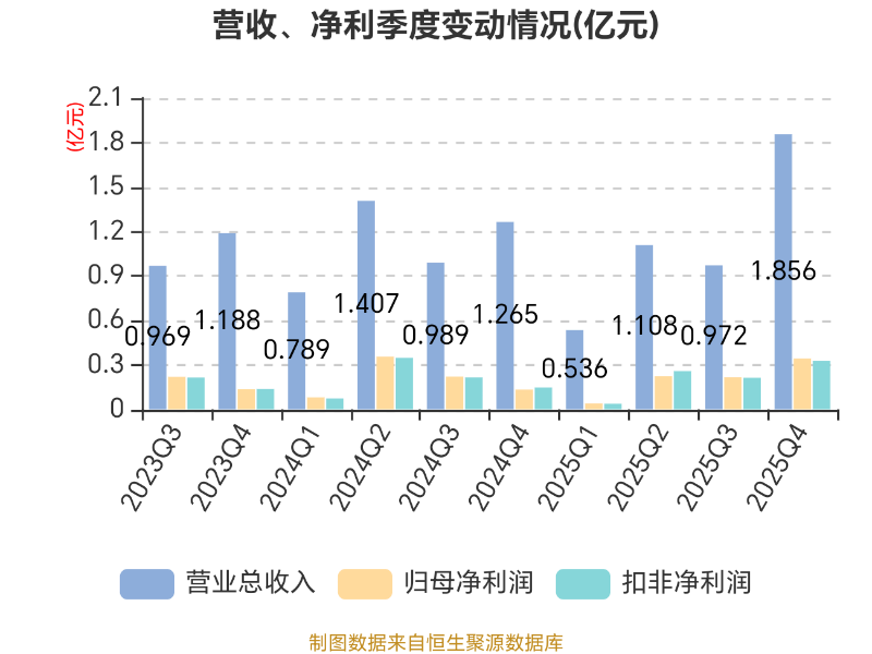 中证智能财讯新余国科(300722)4月7日披露2025年年度报告。2025年,公司实现营业总收入4.47亿元,同比增长0.46%;归母净利润8248.3万元,同比增长4.17%;扣非净利润8345.51万元,同比增长6.28%;经营活动产生的现金流量净额为8634.87万元,同比增长20.30%;报告期内,新余国科基本每股收益为0.3元,加权平均净资产收益率为12.81%。公司2025年度分配预案为:拟向全体股东每10股派现1.8元(含税)。