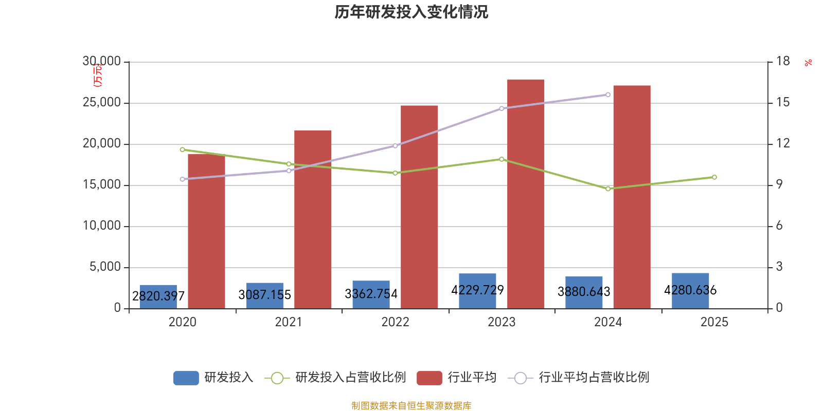2025年全年,公司研发投入金额为4280.64万元,同比增长10.31%;研发投入占营业收入比例为9.57%,相比上年同期上升0.85个百分点。此外,公司全年研发投入资本化率为0%。