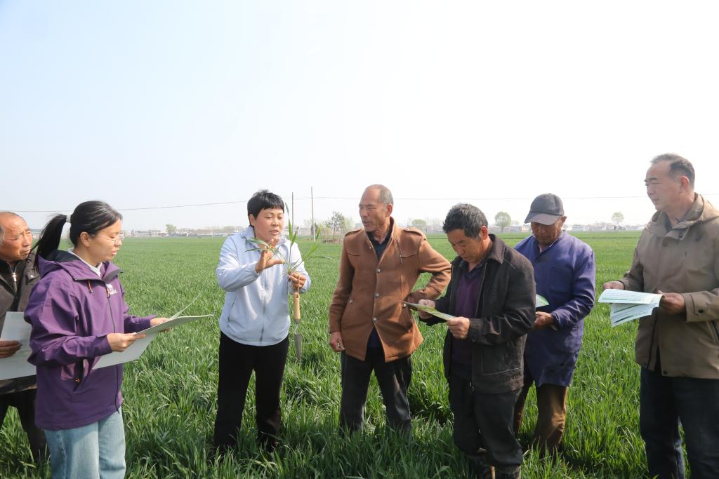 4月3日,邢台市南和区农技人员在田间地头为农户讲解冬小麦管理技术。新华社记者赵鸿宇摄