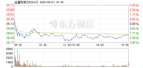 4月7日,金富科技盘中加速下跌,5分钟内跌幅超过2%,截至9点35分,报28.4元,成交4827.33万元,换手率1.70%。