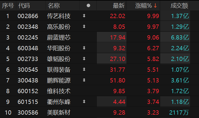 原标题:钠离子电池概念表现活跃 传艺科技涨停