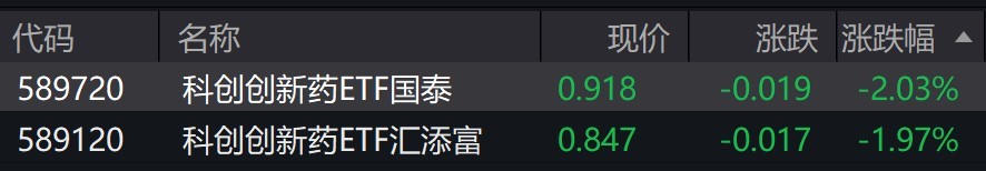 原标题:创新药概念股走弱,科创创新药相关ETF跌约2%