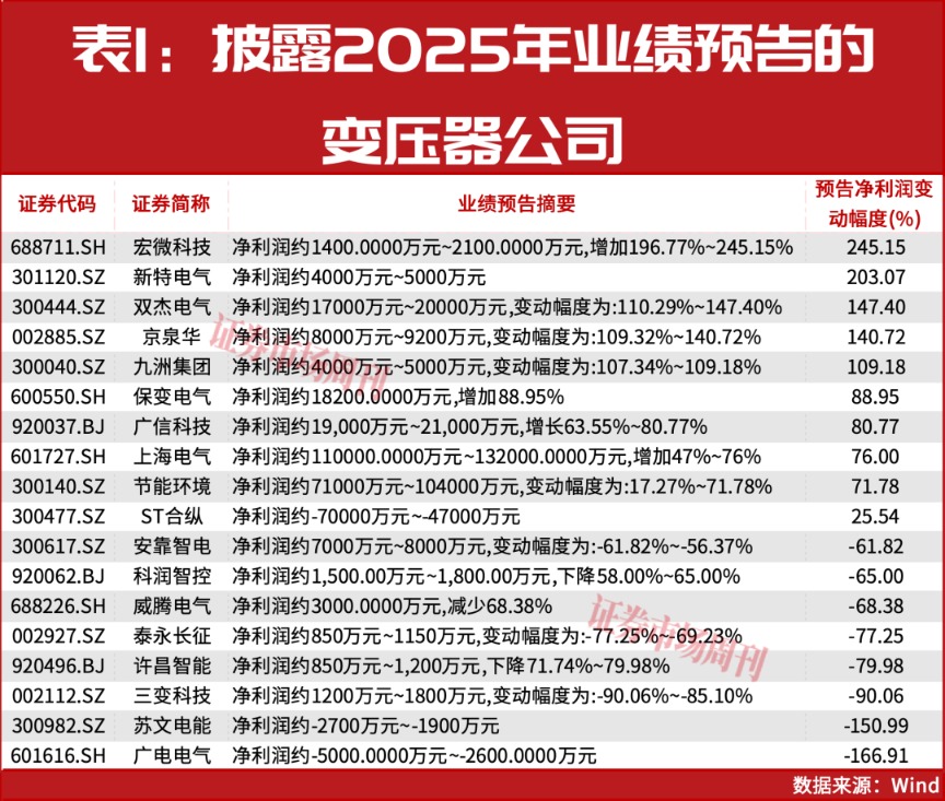 当然,尽管有部分公司遭遇原材料上升的冲击,但多数变压器企业基本面仍向好。据Wind数据统计,18家发布2025年业绩预告的变压器公司,业绩预增和扭亏的公司仍有9家。若从净利润变动幅度看,实现同比增长的则有10家。此外,最新发布正式年报的9家公司营收均增长,业绩出现下滑的公司仅1家。