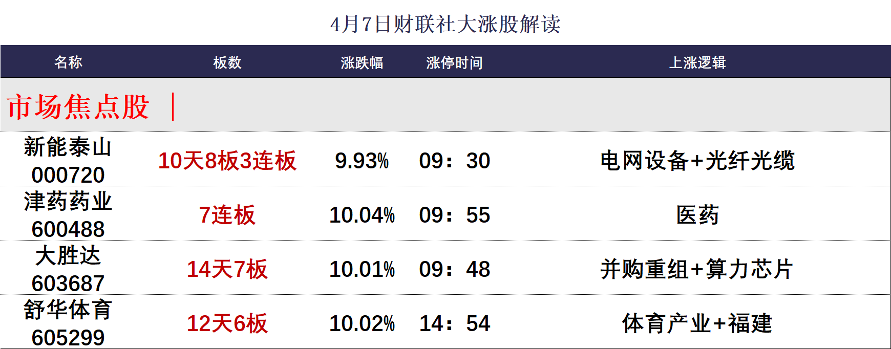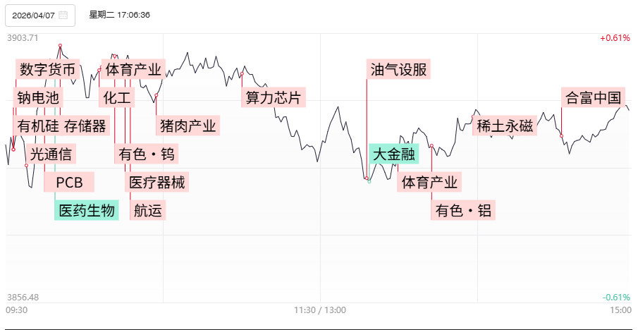 财联社4月7日讯,今日93股涨停,26股炸板,封板率为78%,津药药业7连板,新能泰山10天8板,汇源通信3连板,大胜达14天7板,舒华体育12天6板,新中港5天4板,国晟科技6天3板。市场全天宽幅震荡,三大指数最终集体收红,科创50指数涨超1%。黄白线分化明显,中小盘股走势较强,微盘股指数涨超2%。沪深两市成交额1.61万亿,较上一个交易日缩量421亿。盘面上,市场热点快速轮动,全市场超3900只个股上涨。板块方面,体育、化工、农林牧渔板块涨幅靠前;工程机械、保险、军工、银行板块跌幅靠前。截至收盘,沪指涨0.26%,深成指涨0.36%,创业板指涨0.36%。