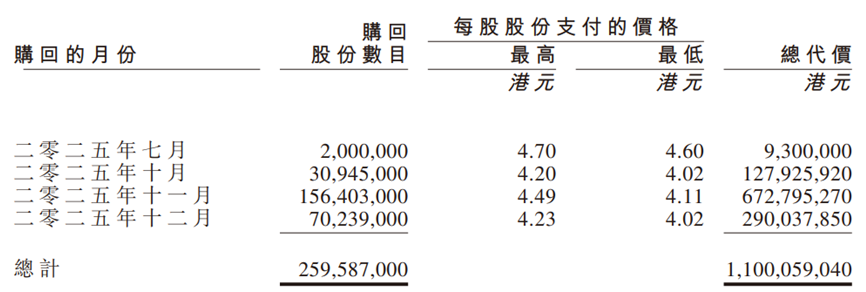 同时,飞鹤2025年全年实行多次股份回购,共回购约2.596亿股股份,累计回购金额约11亿港元。截至2025年末,公司持有259,587,000股库存股份。