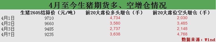 不过,即便按照较低标准,以某头部期货公司4月7日生猪期货13%的保证金比例计算,当前多空双方持仓也已经是“陈兵百亿”。