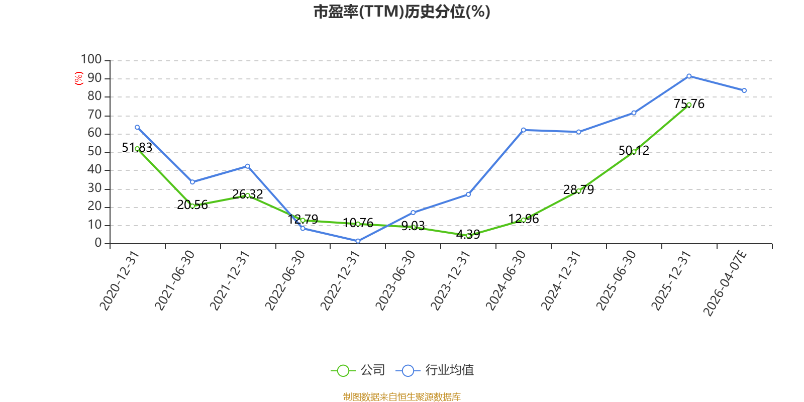以本次披露业绩预告均值计算,公司近年市盈率(TTM)图如下所示: