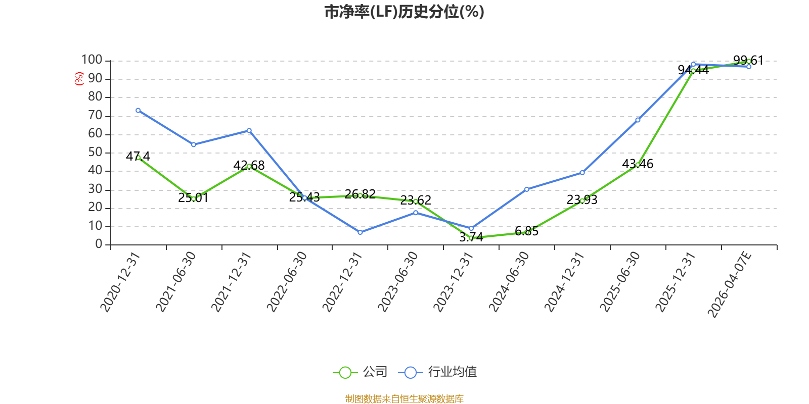 市盈率、市净率为负时,不显示当期分位数,会导致折线图中断。