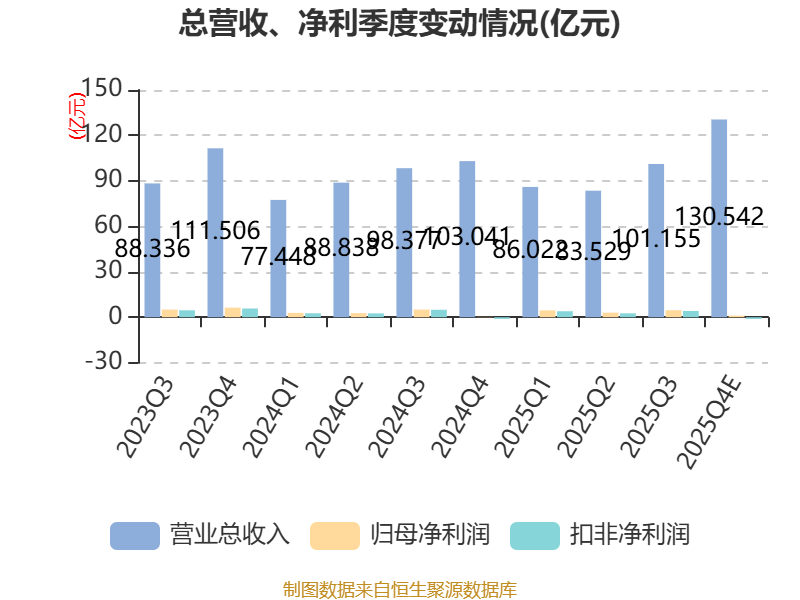 中证智能财讯东山精密(002384)4月7日晚间披露2025年业绩快报,公司实现营业收入401.25亿元,同比增长9.12%;归母净利润13.29亿元,同比增长22.43%;扣非净利润9.6亿元,同比增长6.8%;基本每股收益0.75元,加权平均净资产收益率为6.62%。以4月7日收盘价计算,东山精密目前市盈率(TTM)约为150.22倍,市净率(LF)约9.37倍,市销率(TTM)约5.34倍。