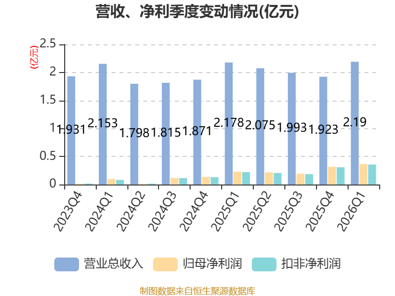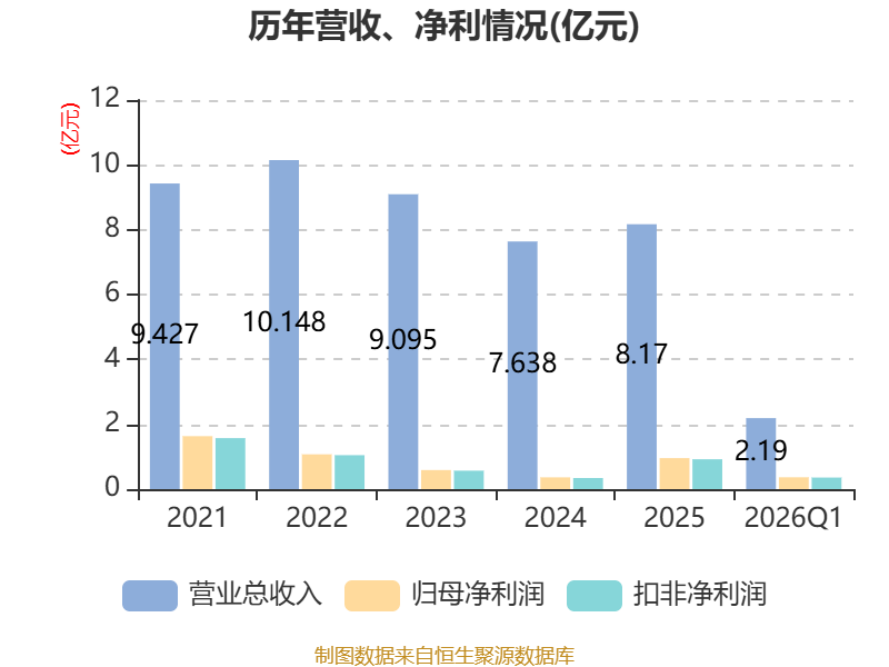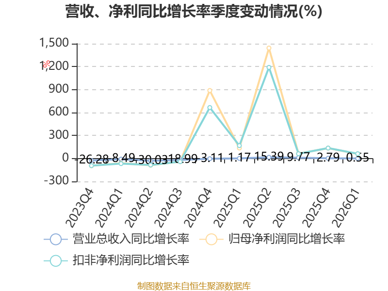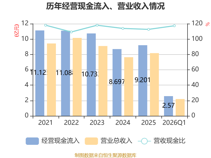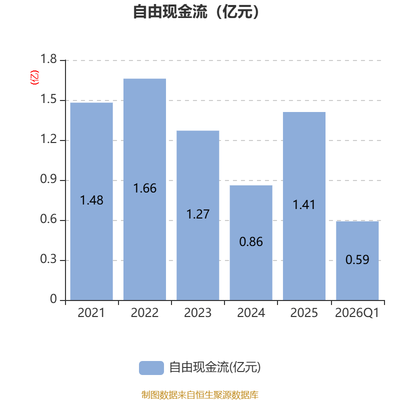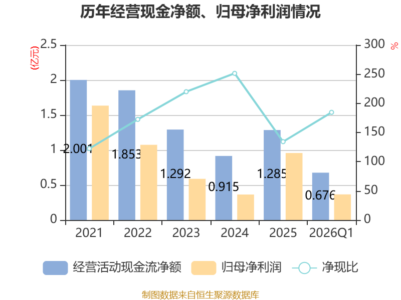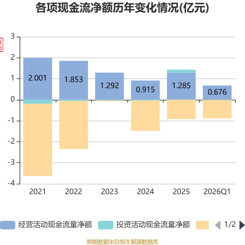 截至2026年一季度末,公司经营活动现金流净额为6764.34万元,同比增长40.44%;筹资活动现金流净额-8790.17万元,同比减少8398.17万元;投资活动现金流净额-71.76万元,上年同期为1459.13万元。