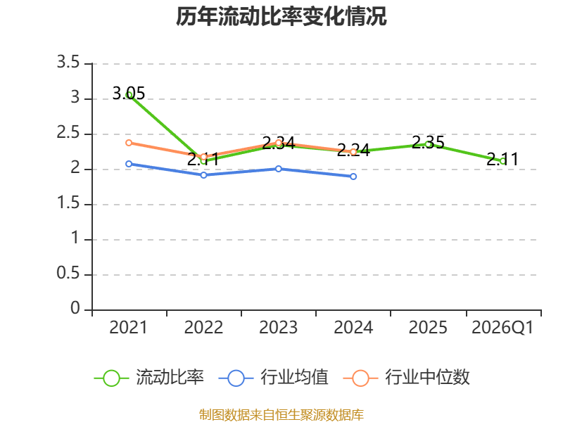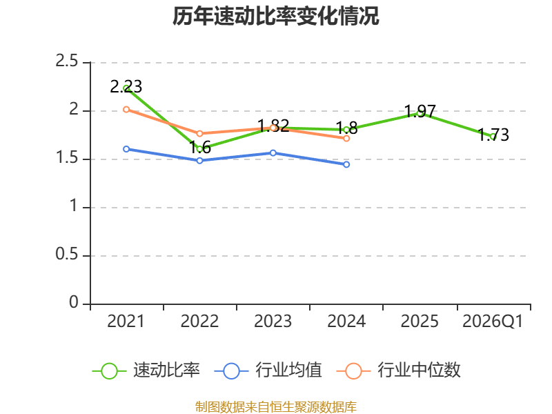 2026年第一季度,公司流动比率为2.11,速动比率为1.73。