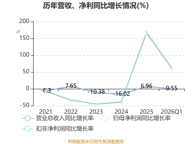 资产重大变化方面,截至2026年一季度末,公司应收票据及应收账款较上年末减少19.42%,占公司总资产比重下降1.16个百分点;货币资金较上年末减少5.32%,占公司总资产比重下降0.74个百分点;存货较上年末增加2.64%,占公司总资产比重上升0.61个百分点;固定资产较上年末减少2.08%,占公司总资产比重上升0.51个百分点。