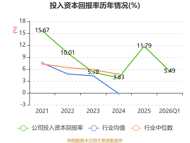 盈利能力方面, 2026年一季度公司加权平均净资产收益率为4.94%,同比上升1.71个百分点。公司2026年第一季度投入资本回报率为5.49%,较上年同期上升2.6个百分点。