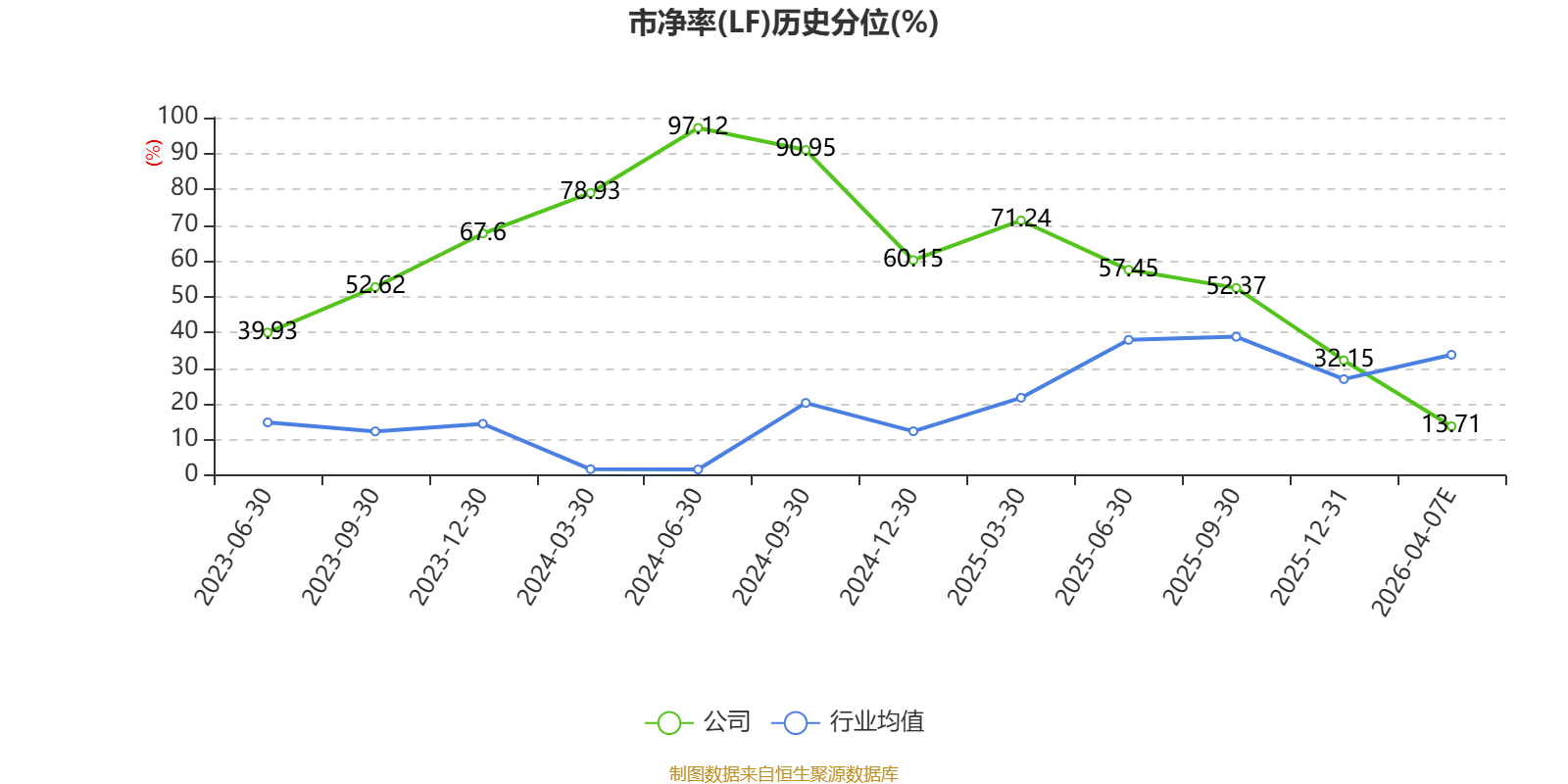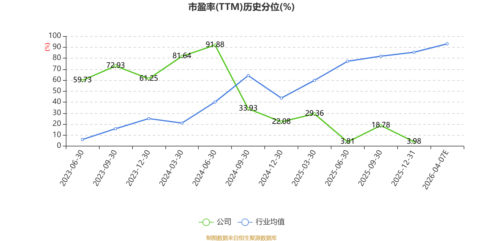 市盈率、市净率为负时,不显示当期分位数,会导致折线图中断。