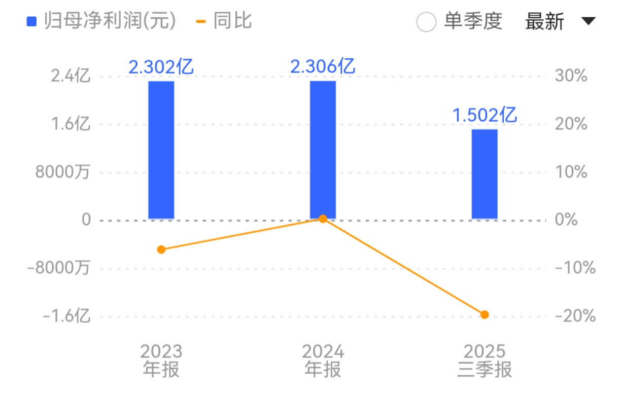 2025年前三季度,公司营收、净利润双双下滑,营收12.30亿元,同比下降0.04%,归母净利润1.50亿元,同比下降19.75%。据悉,公司将于2026年4月29日披露2025年年报和2026年一季报。
