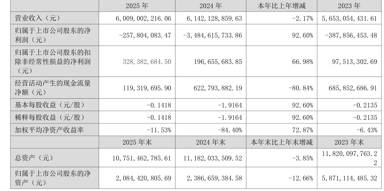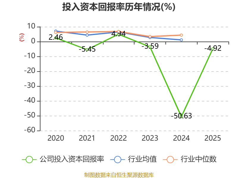 数据显示,2025年公司加权平均净资产收益率为-11.53%,较上年同期上升72.87个百分点。公司2025年投入资本回报率为-4.92%,较上年同期上升45.71个百分点。