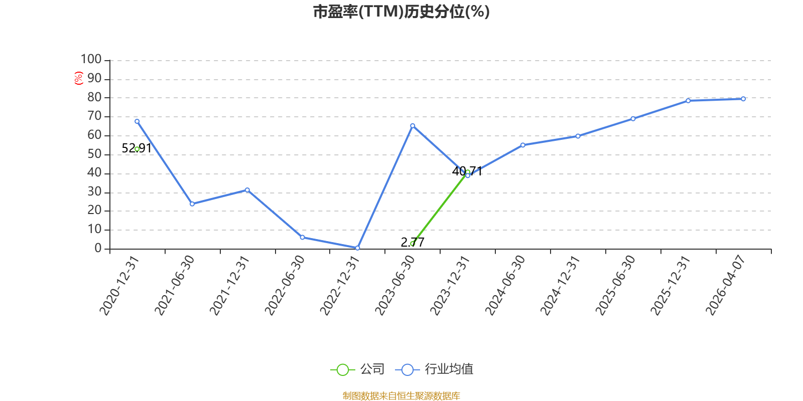 市盈率、市净率为负时,不显示当期分位数,会导致折线图中断。