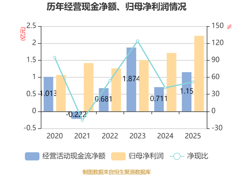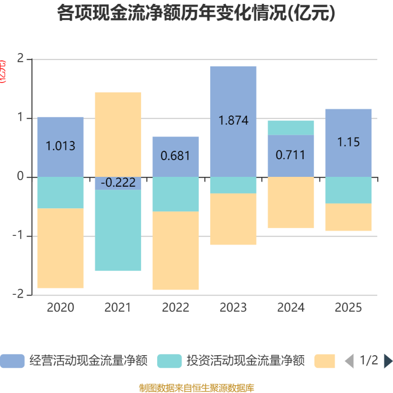 截至2025年,公司经营活动现金流净额为1.15亿元,同比增长61.77%;筹资活动现金流净额-4639.75万元,同比增加4043.45万元;投资活动现金流净额-4523.86万元,上年同期为2427.74万元。