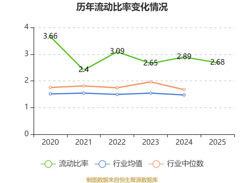 2025年,公司流动比率为2.68,速动比率为2.02。